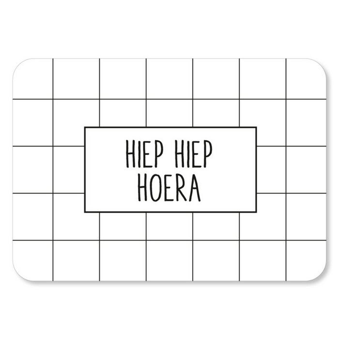 Ansichtkaart 'hiep hiep hoera zwart/wit'